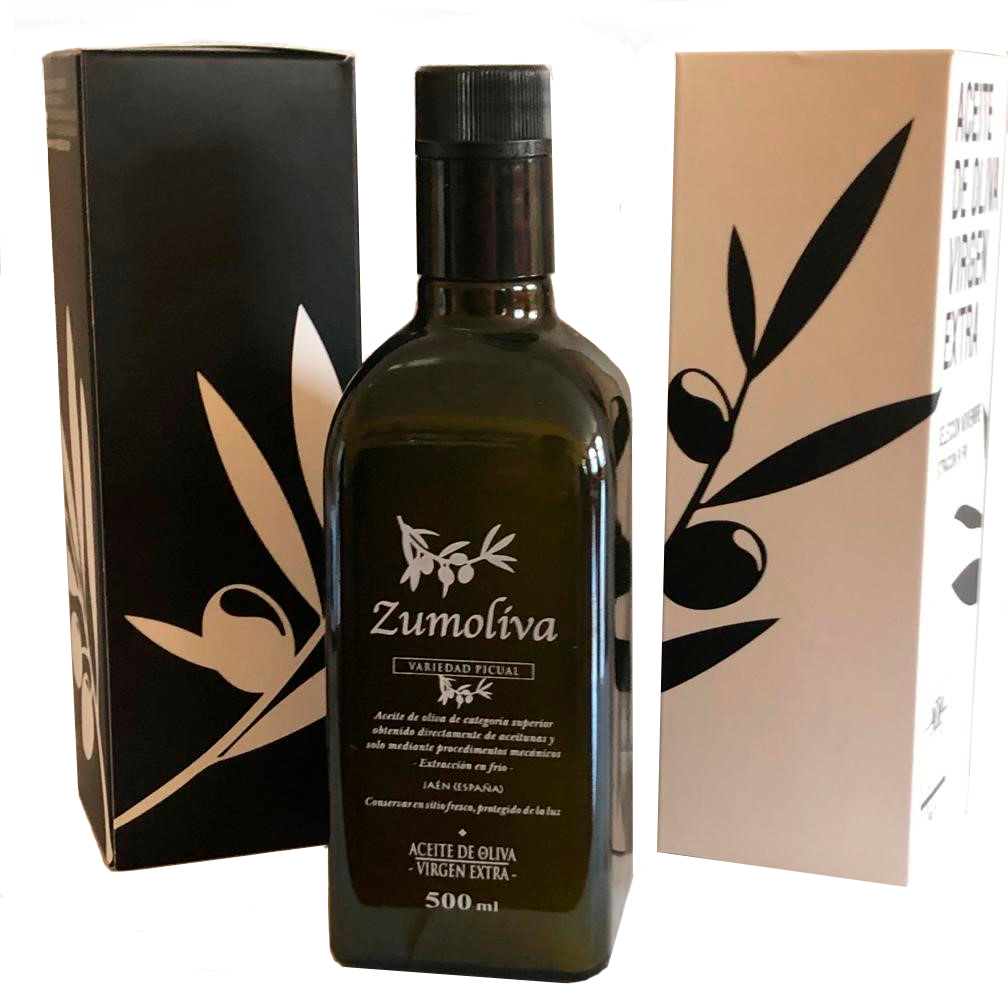Frasca negra brillante de 500ml e irrellenable. Contiene AOVE elaborado con aceitunas de la variedad picual procedentes de agricultura integrada. De un agradable sabor, ligero amargor y picor, frutado intenso y con un color amarillo verdoso.